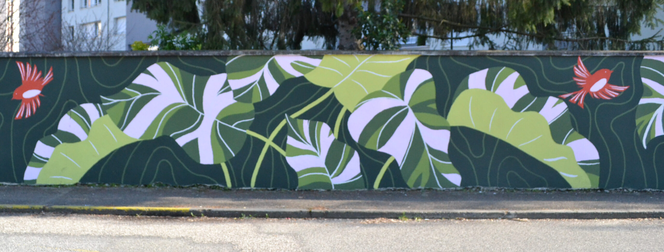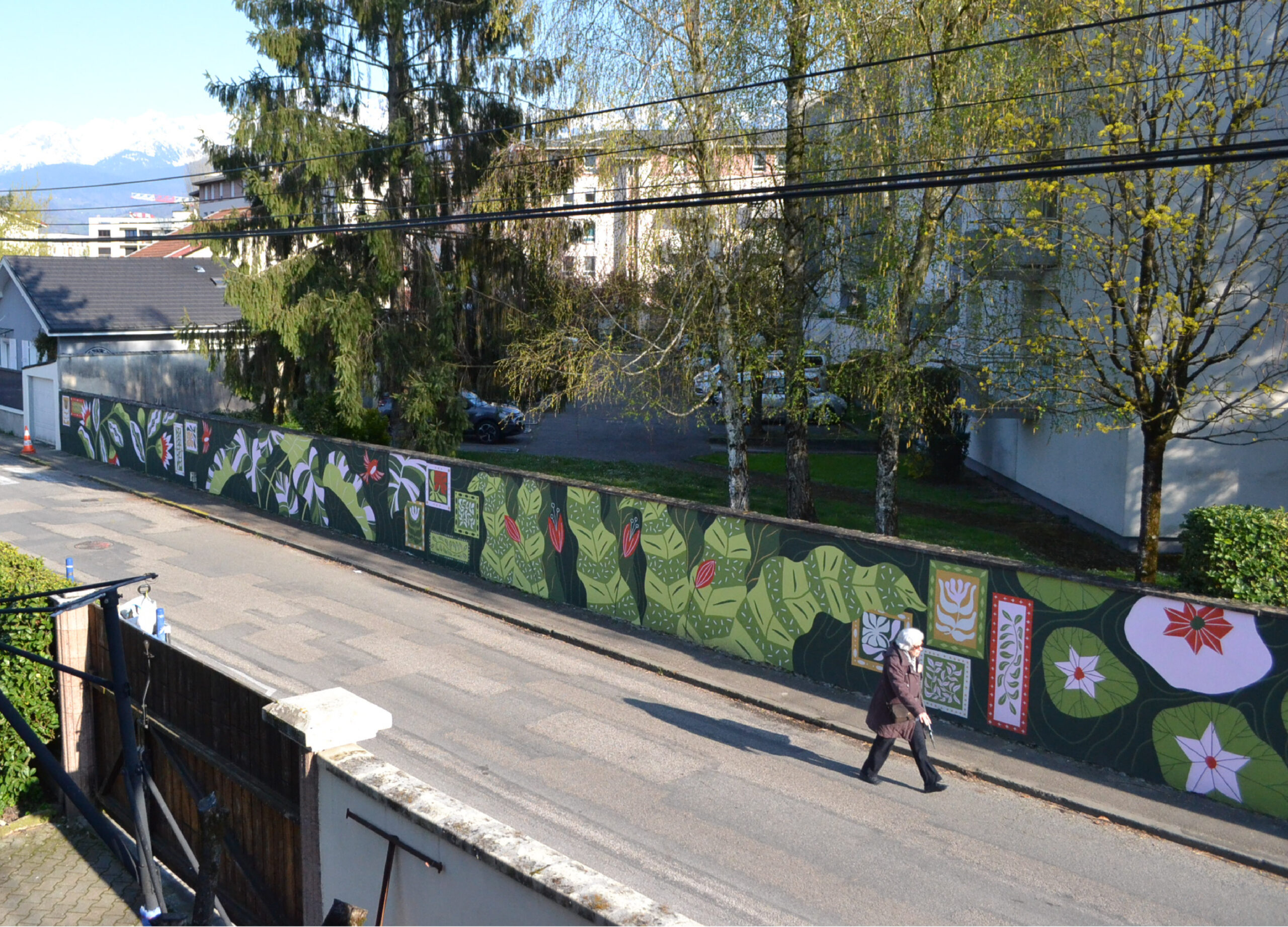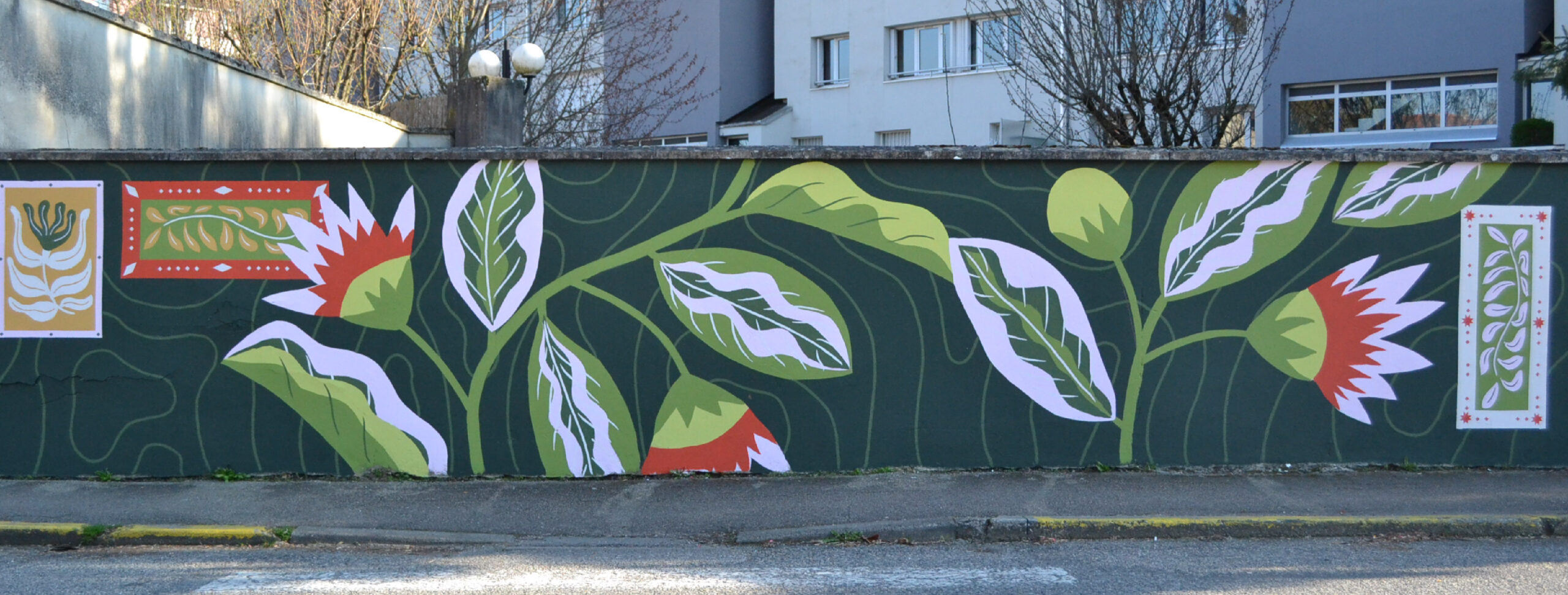 Fresque dans l’espace public sur un mur de 40 mètres de long.